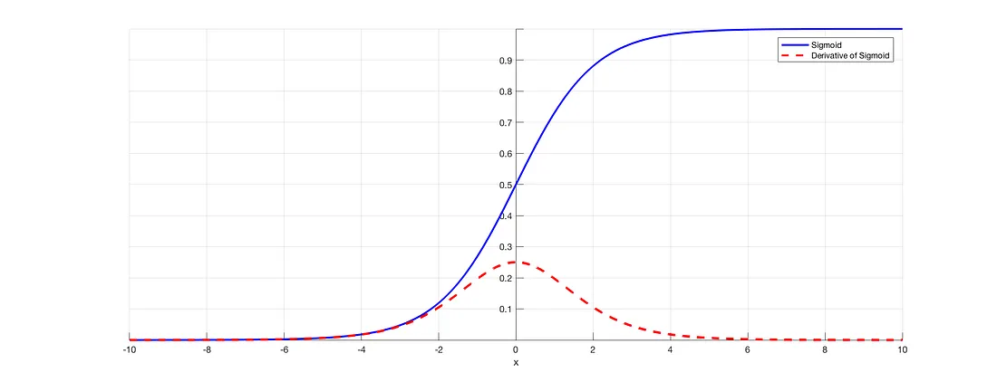 sigmoid는 가장 기울기가 높은 지점이 0.25이며, 원점에서 멀어질 수록 0에 수렴합니다.